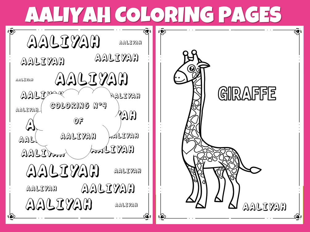 AALIYAH Coloring Pages, Animal coloring book for children named AALIYAH | personalized coloring pages for AALIYAH | The perfect gift for the little girl AALIYAH