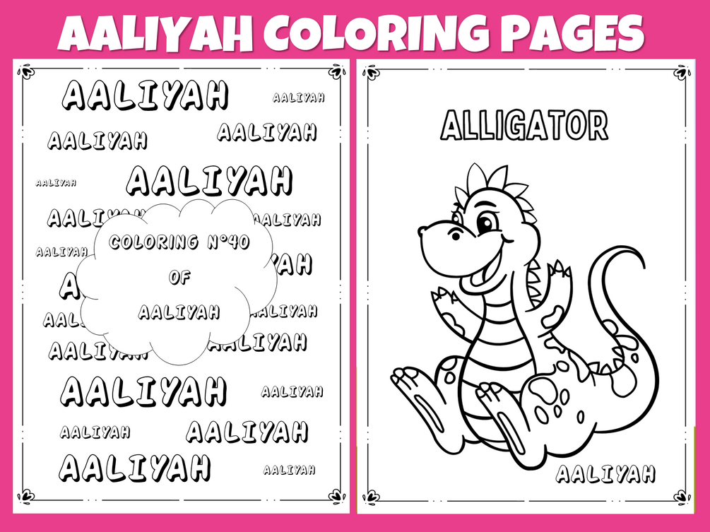 - 1 PDF download with 82 pages (40 coloring pages, 40 pages designed with AALIYAH 's name and a cover page)