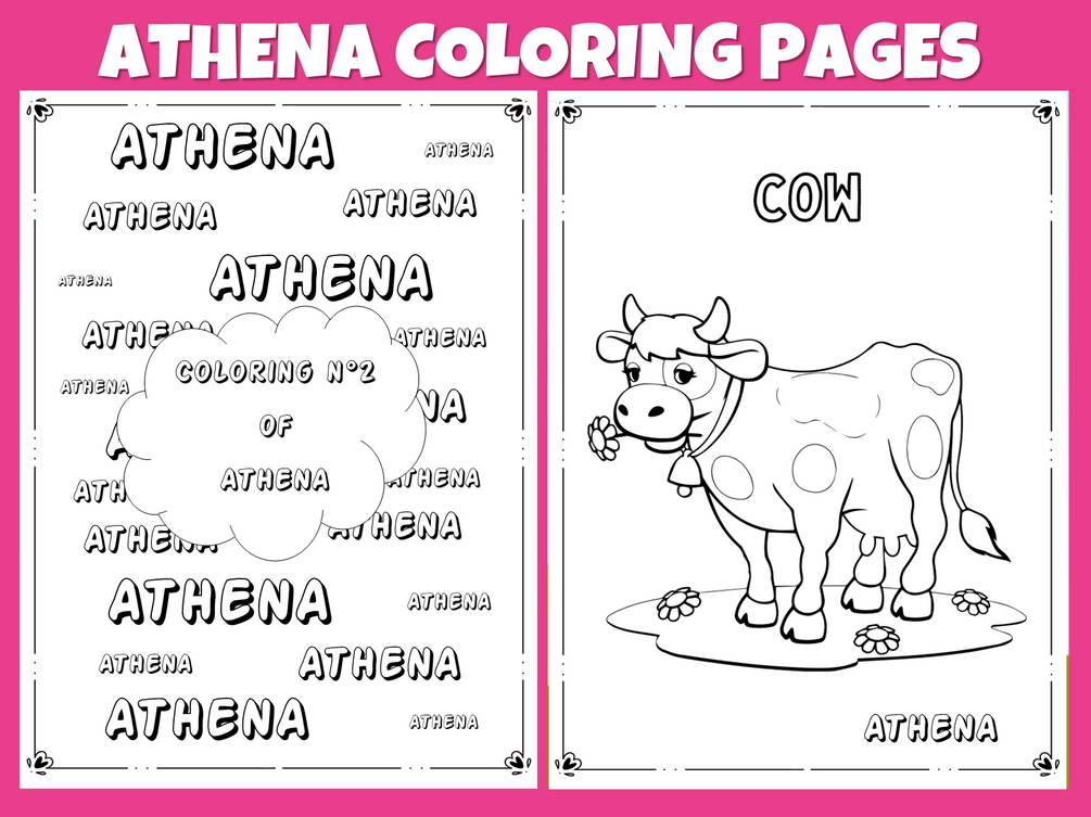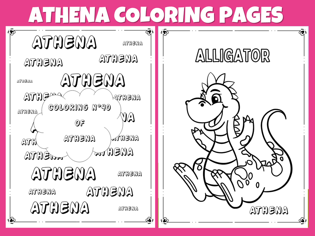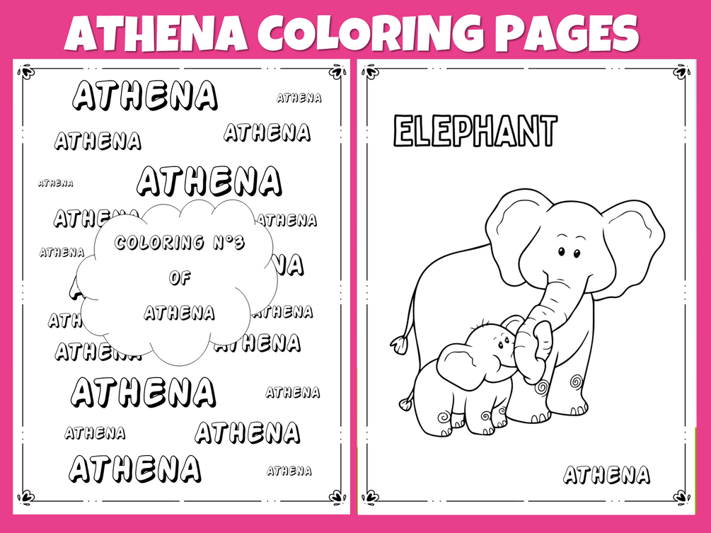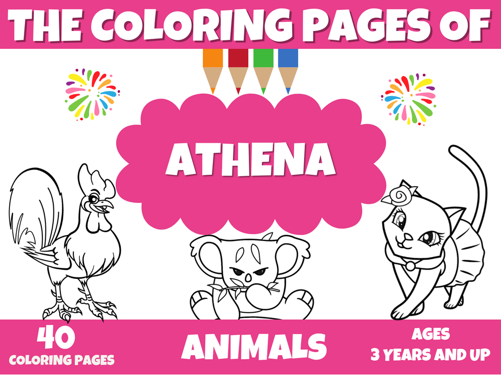 ATHENA Coloring Pages, Animal coloring book for children named ATHENA | personalized coloring pages for ATHENA | The perfect gift for the little girl ATHENA