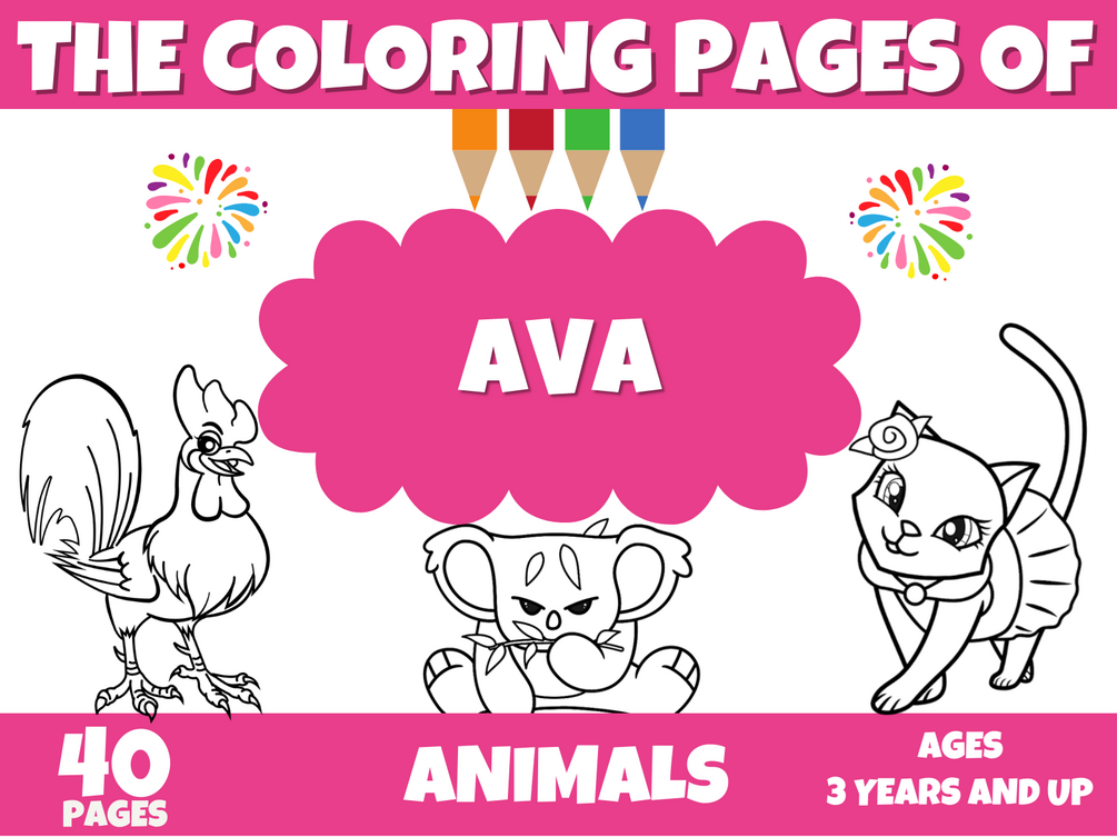 AVA Coloring pages, Animal coloring book for children named AVA | personalized coloring pages for AVA | The perfect gift for the little girl AVA