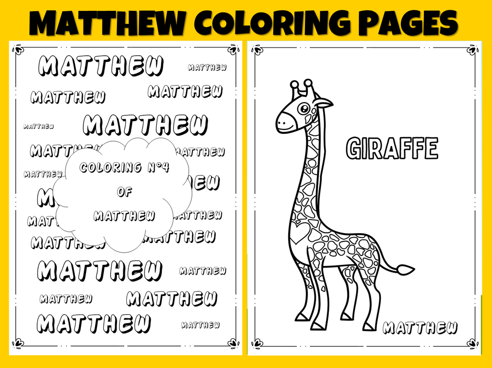 - 1 PDF download with 82 pages (40 coloring pages, 40 pages designed with MATTHEW 's name and a cover page)