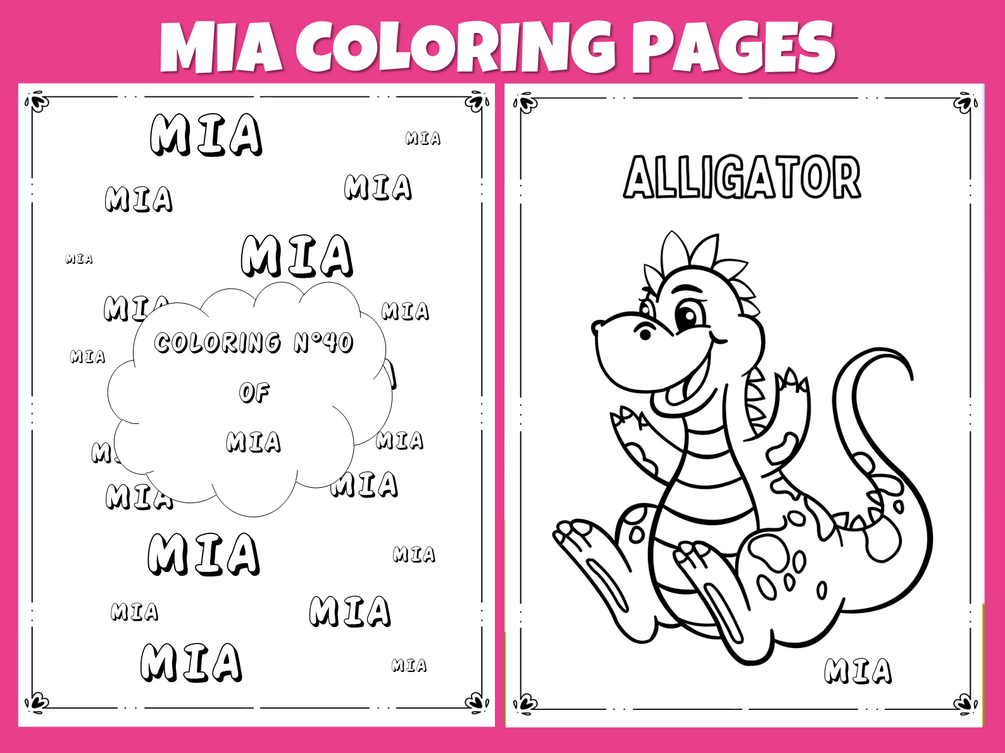 - 1 PDF download with 82 pages (40 coloring pages, 40 pages designed with MIA 's name and a cover page)