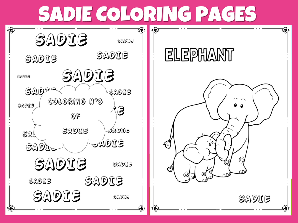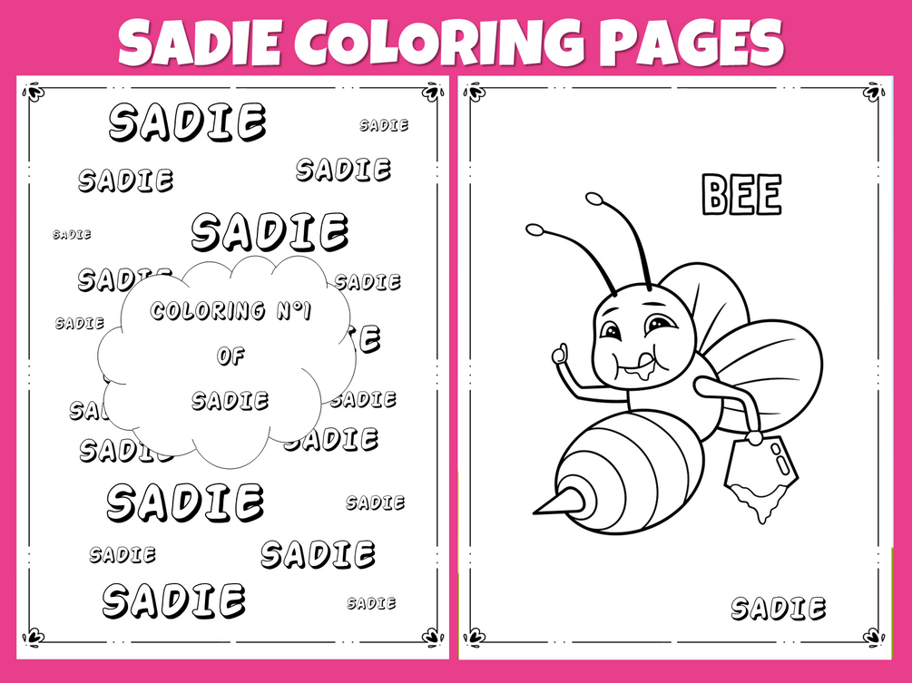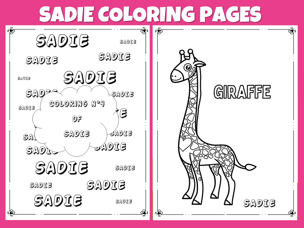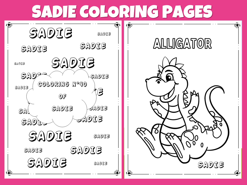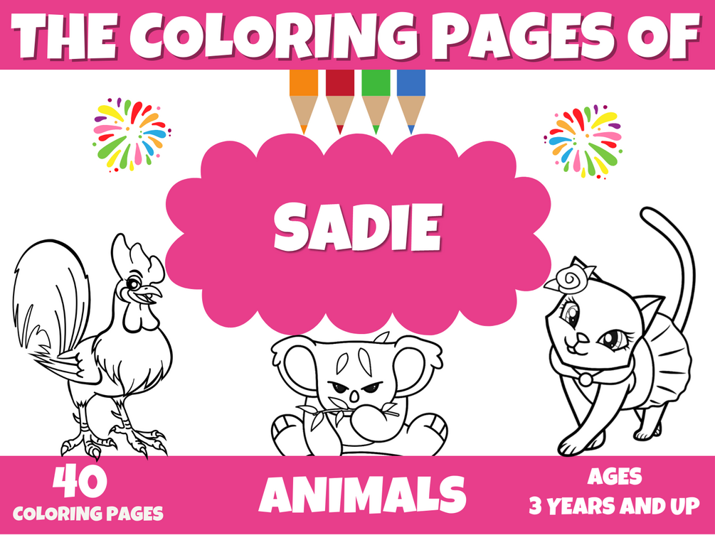 - 1 PDF download with 82 pages (40 coloring pages, 40 pages designed with SADIE 's name and a cover page)