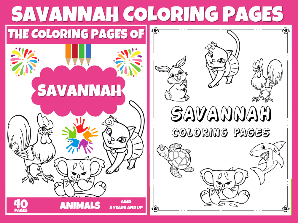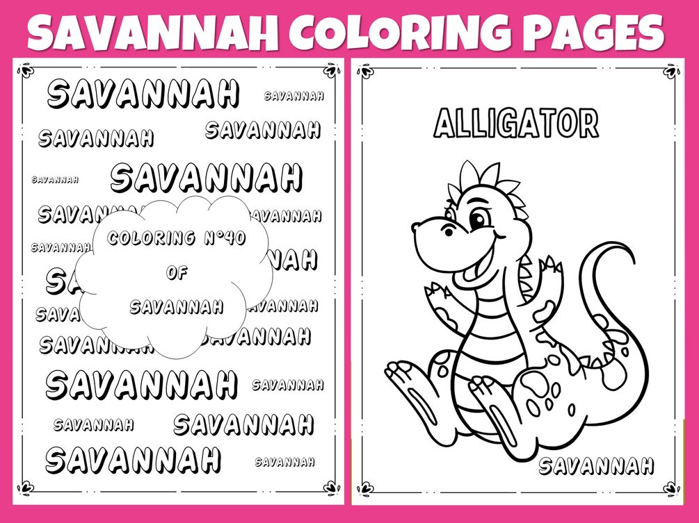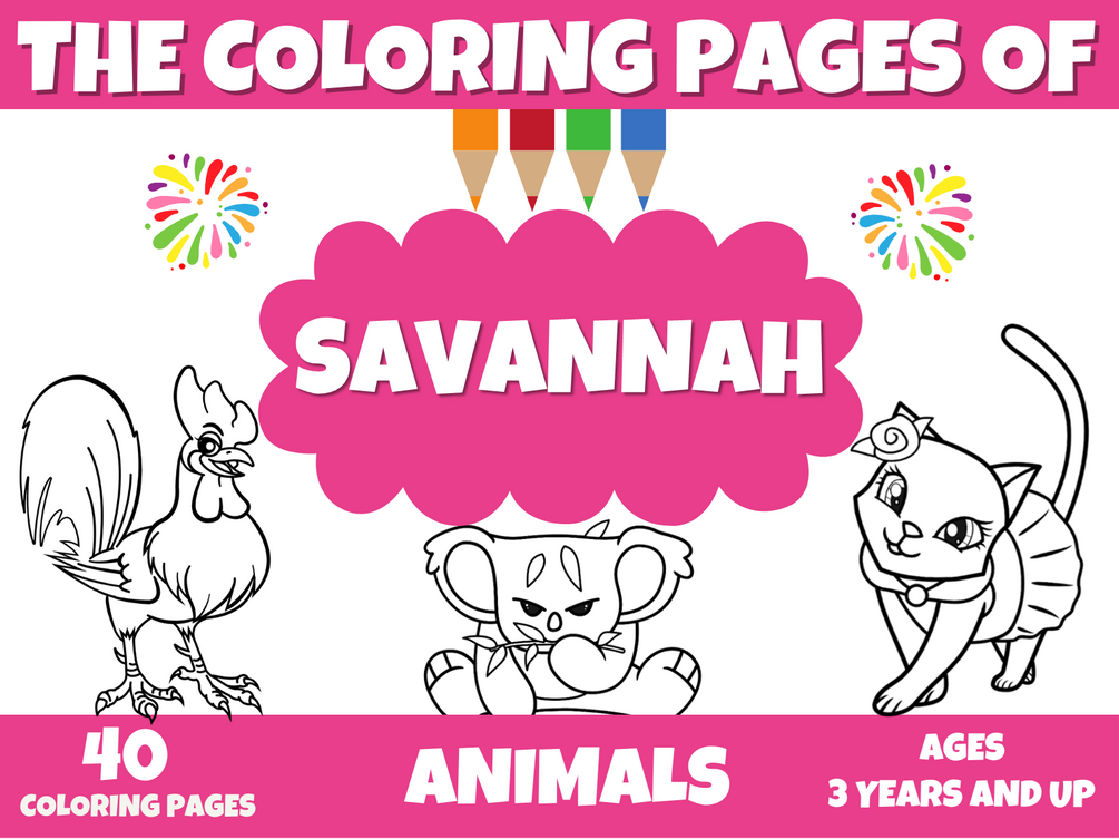 - 1 PDF download with 82 pages (40 coloring pages, 40 pages designed with SAVANNAH 's name and a cover page)