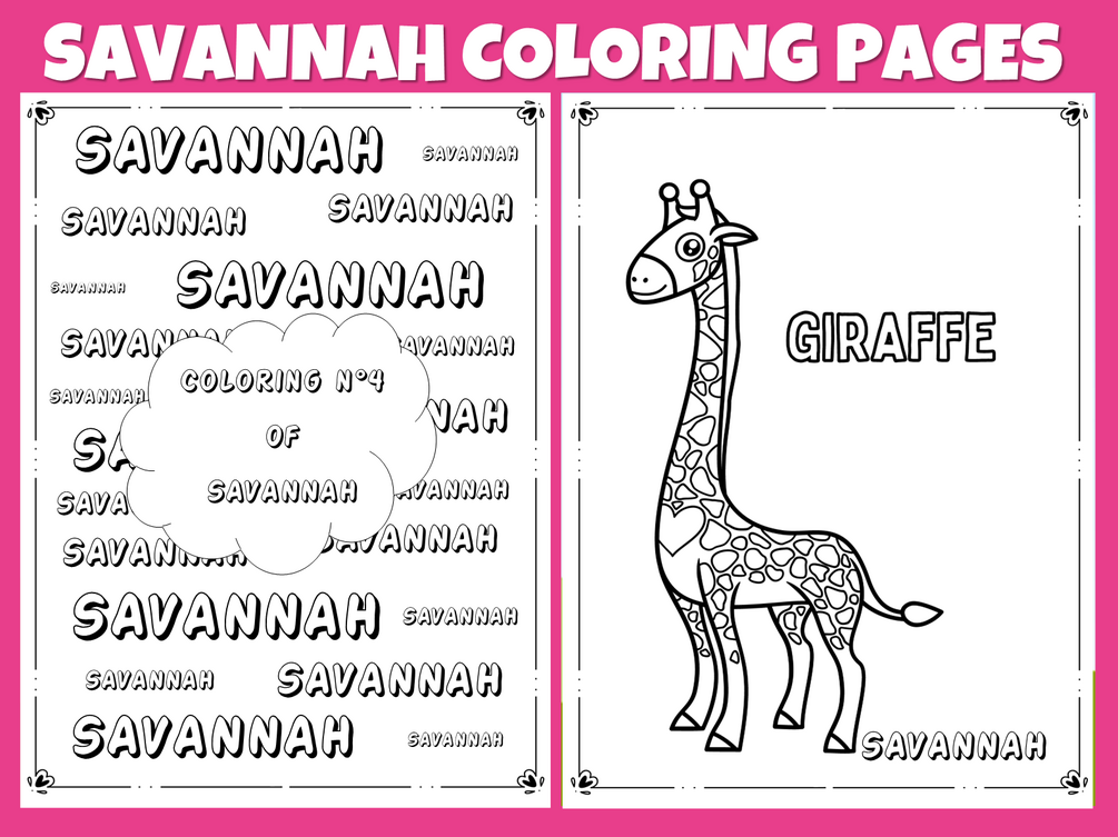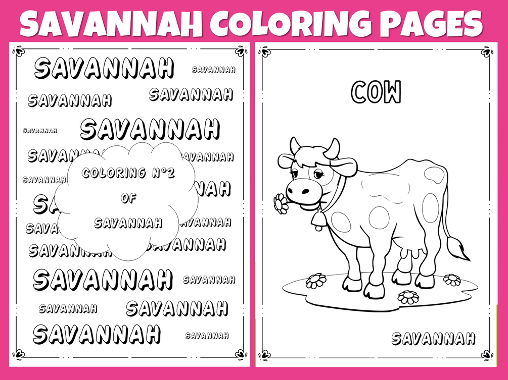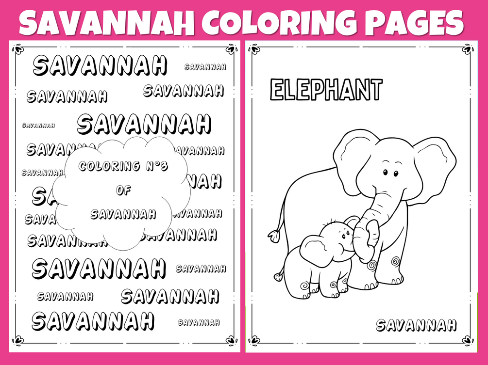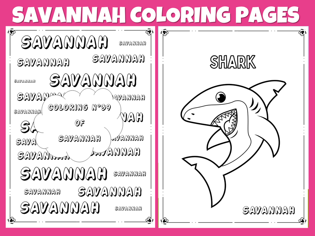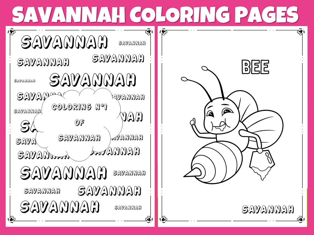 SAVANNAH Coloring Pages, Animal coloring book for children named SAVANNAH | personalized coloring pages for SAVANNAH | The perfect gift for the little girl SAVANNAH