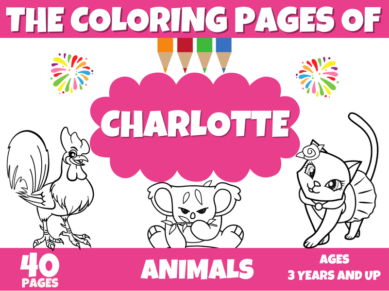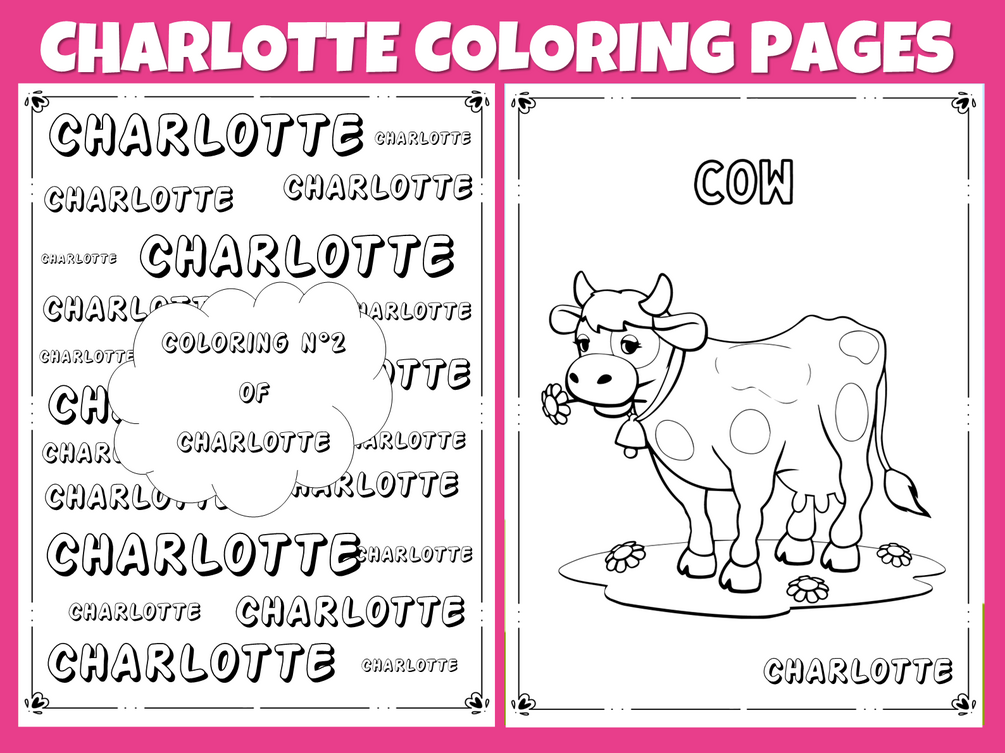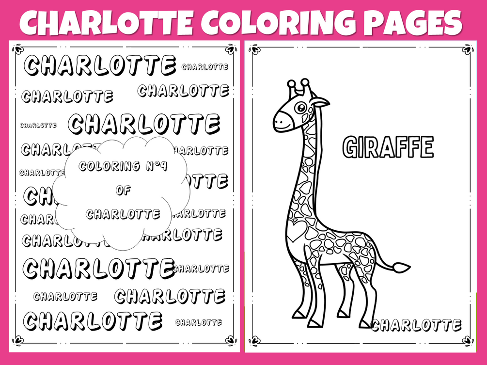 - 1 PDF download with 82 pages (40 coloring pages, 40 pages designed with Charlotte's name and a cover page)